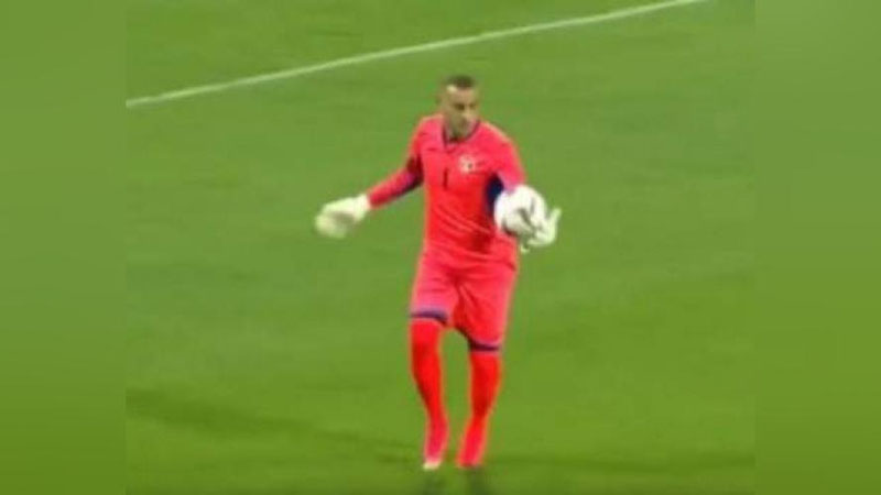В товарищеской встрече сборных Иордании и Индии голкипер иорданцев Амир Шафи забил фантастический мяч.