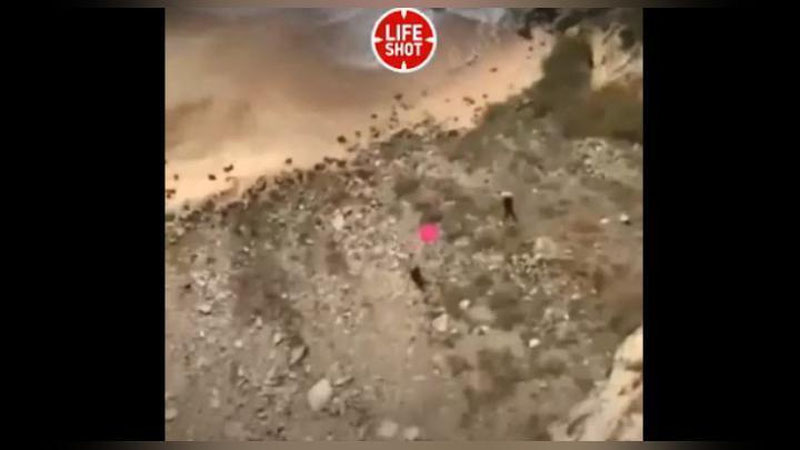 На видео, опубликованном в сети, видно, как тело немца ударяется о камни, и за кадром кто-то кричит: «Ты в порядке?»