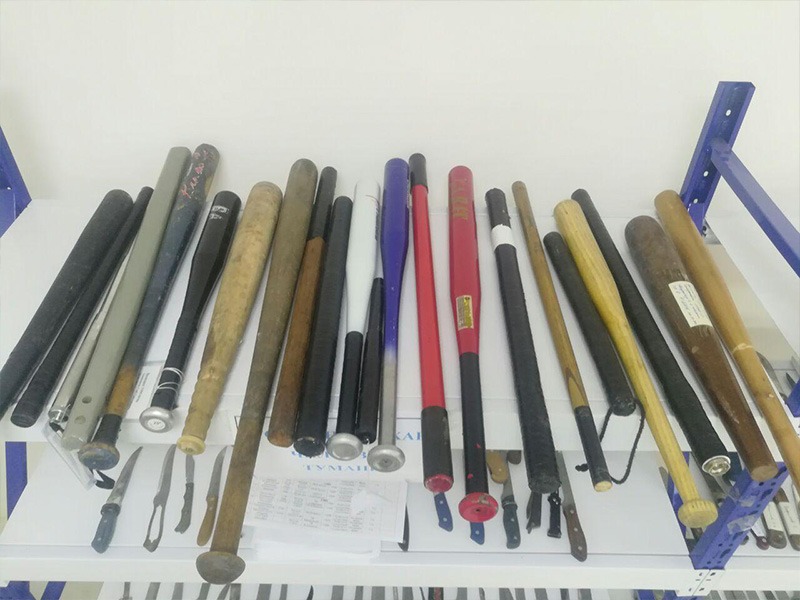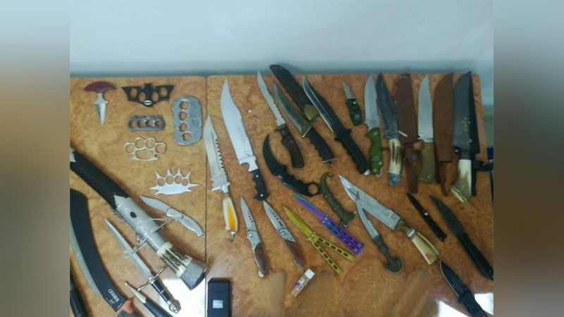 Всего же за 5 месяцев с начала года было обнаружено 4548 ножей и других колюще-режущих предметов, свыше 20 бит и более 50 кастетов и прочих предметов, предназначенных для причинения человеку телесных повреждений.