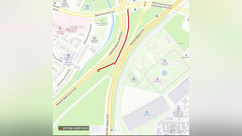 Начиная с 11:00 часов 10 июня до 13 июня пройдёт ремонт дороги на участке от улицы Абдуллы Кадыри до Малой кольцевой дороги в Яшнабадском районе.