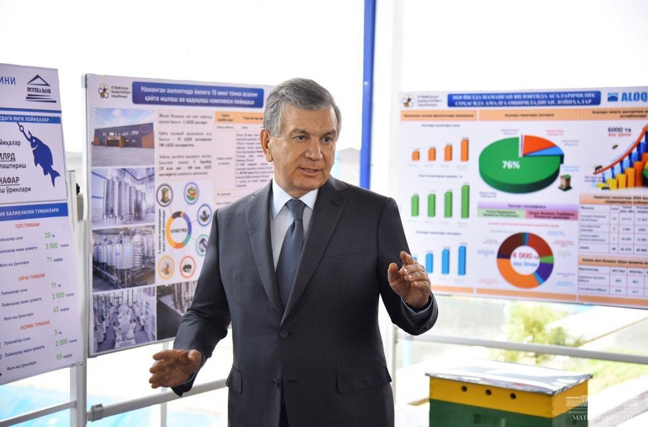 Президент подчеркнул необходимость серьезного подхода к проектам строительства таких предприятий с учетом специфики рыбоводства. В Учкурганском, Мингбулакском, Уйчинском, Папском и Нарынском районах области планируется реализовать 75 новых проектов на сумму 299 миллиардов сумов.