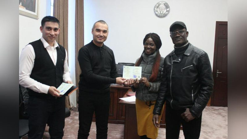 Гана фуқароларининг Андижонда туғилган эгизак фарзандларига "метрика"лар берилди
