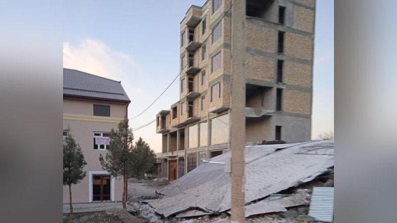 Жиззахда қулаган бинонинг ёнидагиси ҳам омонат тургани маълум бўлди (видео)