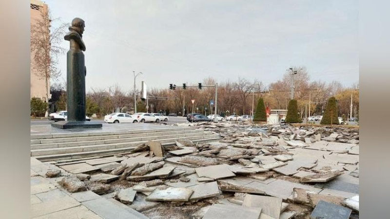 'Космонавтлар майдонидаги гранит плиталар рухсатсиз бузиб ташланаётнани аниқланди'ning rasmi
