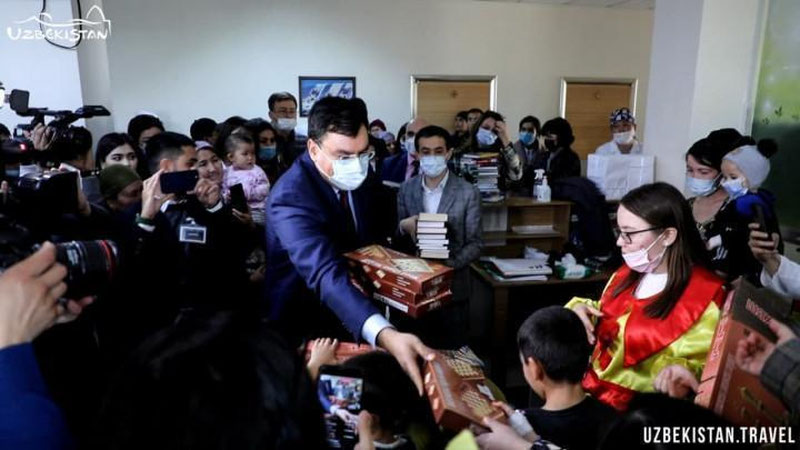 Онкология марказида даволанаётган болаларга туркум китоблар совға қилинди