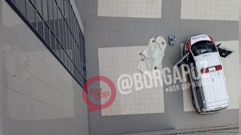 Фото ва видеода йиқилган эркакнинг жасади ва унинг ёнида турган тез ёрдам машинаси акс этган. Маълумотларга кўра, у бинонинг 10-11 қаватидан қулаган бўлиши мумкин.