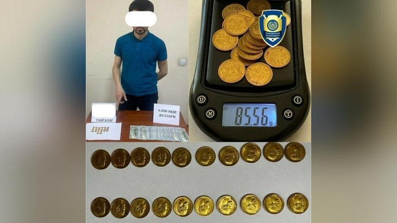 У фуқаро А.К. бошқа бир фуқаро М.ни қадимий тилла тангаларни ўтказиш орқали даромад орттиришга қизиқтириб, тилла ранг кўринишидаги 20 дона тангаларни “Николай-5” тилла тангаси деб ҳар бирини 300 АҚШ долларидан ҳисоблаб, жами 6 000 АҚШ долларига сотган вақтида ашёвий далиллар билан ушланган.