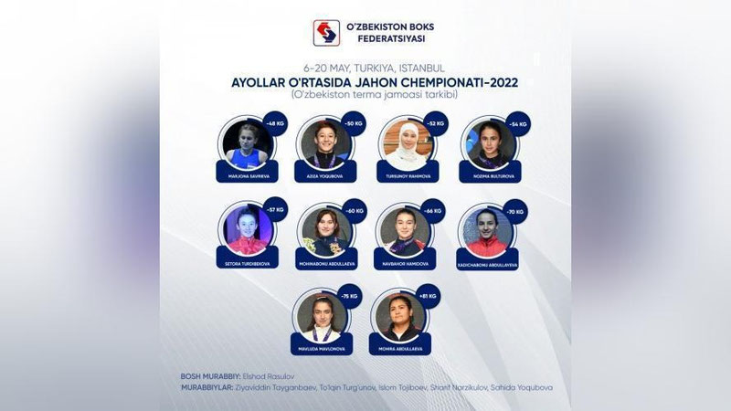 9-20 май кунлари Туркиянинг Истанбул шаҳрида бокс бўйича аёллар ўртасидаги жаҳон чемпионати ўтказилади. Бу ҳақда Ўзбекистон бокс федерацияси матбуот хизмати маълум қилди.