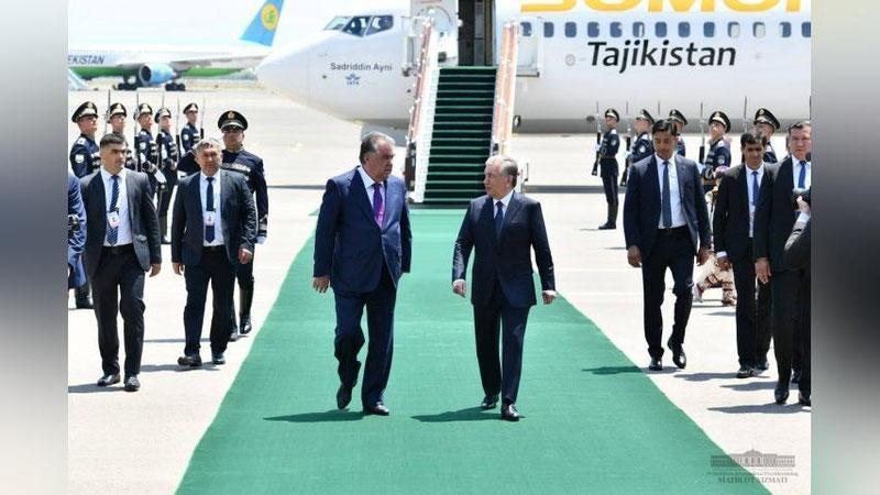 Шавкат Мирзиёевнинг таклифига биноан Тожикистон Президенти расмий ташриф билан Ўзбекистонга келди (фото)