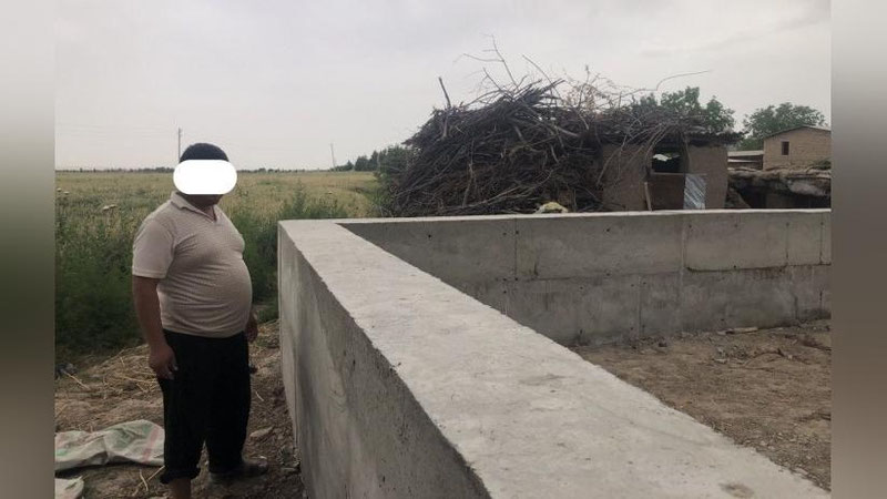 Унда, фуқаро М.А. туман ҳокимлиги захирасидаги “Қоракўз” маҳалласи ҳудудида жойлашган суғориладиган ер майдонининг 2 сотихини ноқонуний эгаллаб олиб, шундан 69 кв.м ер майдонида қурилиш ишларини амалга оширганлиги аниқланган.