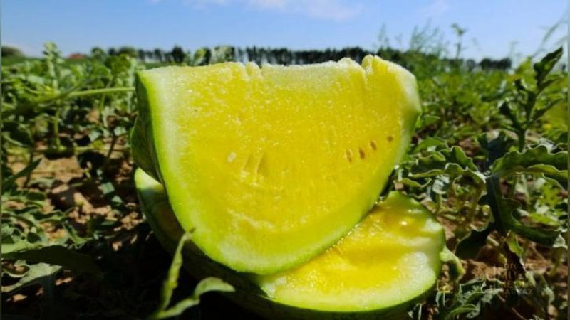 Тошкент вилояти Оҳангарон туманидаги фермер хўжалигида уруғи Жанубий Кореядан келтирилган "Риамо" навли сариқ тарвуз етиштирилмоқда.