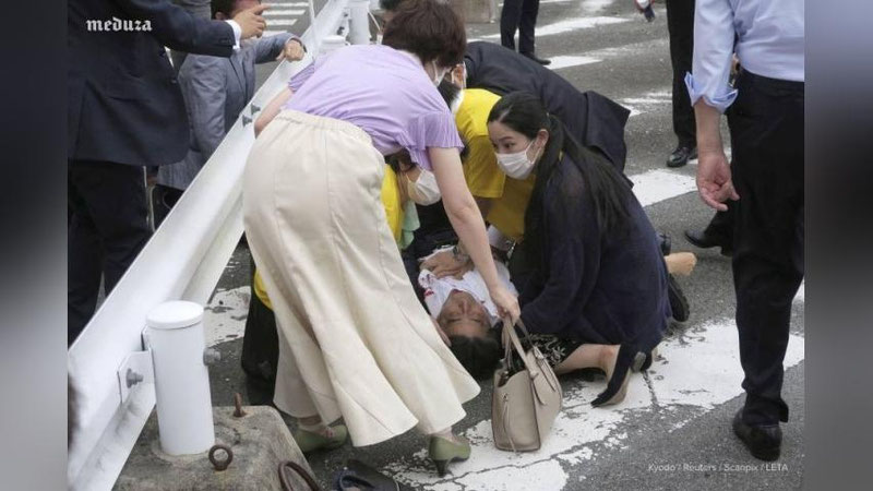 Абэ кўп қон йўқотгани айтилмоқда. Kyodo агентлиги тахминларига кўра, сиёсатчининг юраги урмаяпти ва ўпкаси ишламаяпти.