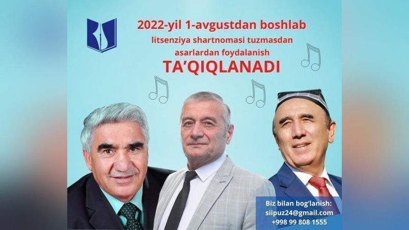 2022 йил 1 августдан бошлаб Ўзбекистон ва Туркманистон халқ артисти Бобомурод Ҳамдамов, Ўзбекистон халқ артисти, Навоий мукофоти совриндори Шерали Жўраев ва Абдурауф Олимов асарларидан лицензия шартномаси тузмасдан ҳар қандай шаклда ва усулда фойдаланиш тақиқланади. Бу ҳақда Маданият вазири Озодбек Назарбеков хабар берди.