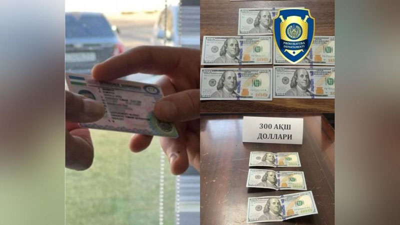 Худди шундай, Департаментнинг Сурхондарё вилояти бошқармаси, Шўрчи туман бўлими томонидан ДХХ ва ИИБ ходимлари билан ҳамкорликда ўтказилган тезкор тадбирларда фуқаро А.Х. фуқаро А.Т.га “В. С.” тоифали ҳайдовчилик гувоҳномаси олиб бериши эвазига 300 АҚШ долларини олган вақтида, шу каби, Шўрчи туманида А.Н. фуқаро Т.Ж.га имтиҳонга қатнашмасдан ҳайдовчилик гувоҳномаси олиб бериши эвазига 300 АҚШ долларини олган вақтида ашёвий далиллар билан ушланган.