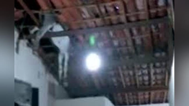 Адашиб қолган эшак шифтдан тушди (Видео)