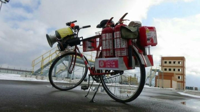 Бу янги топилма бирламчи ёнғинни бартараф қилиш асбоб-ускуналари билан таъминланган, такомиллаштирилган велосипед бўлиб, у диаметри 66 миллиметрлик бир дона ёнғин ўчириш енги (ҚД-70 билан), диаметри 66х77 миллиметрлик бир дона улагич (переходник), икки дона ОП-5 маркали ёнғин ўчиргич, бир дона 100 метрлик қутқариш арқони, бир дона товуш кучайтгич ускунаси, бир дона енгил лом, бир дона енгил багор, бир дона ёнғин ўчириш болғаси, бир дона фонарик (мигалка, бир жуфт кичик фонар), бир дона тиббиёт қутичаси, бир дона 4х4 метрлик кигиз, бир дона гидрант очиш калитидан иборат.