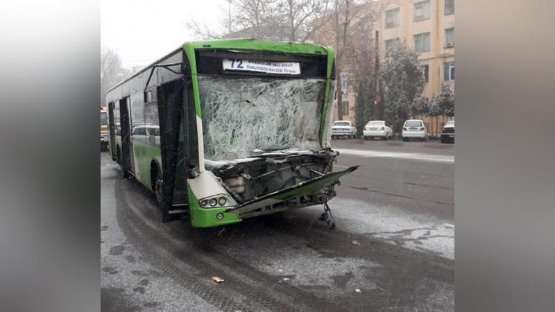 "Авиасозлар" - "Юнусобоад-12 массиви" йўналишидаги 72-сонли "Мереседес" автобуснинг олдчап тарафи жиддий шикастланган. КАМАЗ" русумли зирҳланган инкассатор автомобилининг эса олди қисм шикастланган.