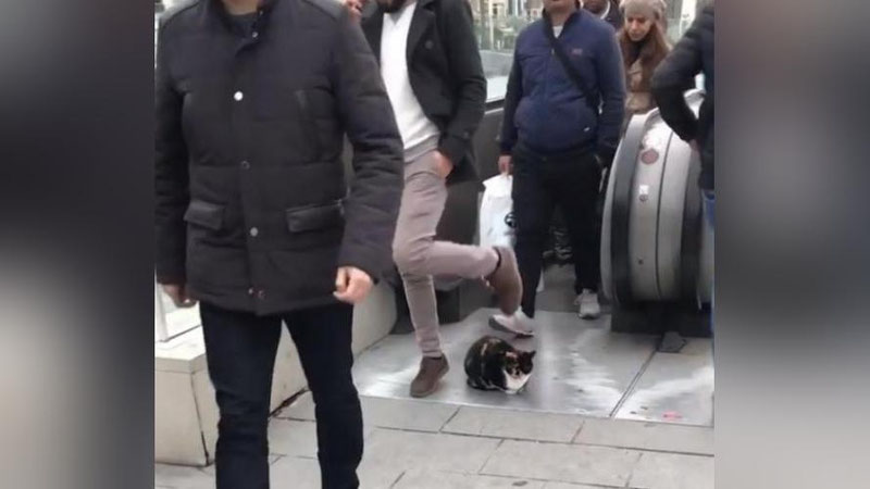 Истанбулда дангаса мушук эскалатор йўлини тўсиб, ижтимоий тармоқларда машҳур бўлди (Видео)