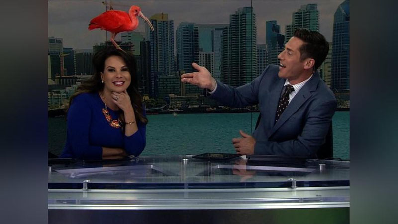 Жонли эфир вақтида телебошловчининг бошига қуш қўнди (видео)