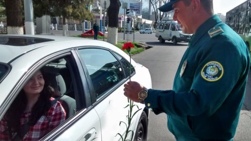 “8 март – Халқаро хотин-қизлар куни” муносабати ҳар йили байрам кунлари йўл-патруль хизмати инспекторлари томонидан аёл ҳайдовчиларни гул билан табриклаши анъанага айланган, дея хабар берди уни Ўзбекистон Республикаси ИИВ Жамоатчилик ва оммавий ахборот воситалари билан алоқалар бошқармаси.