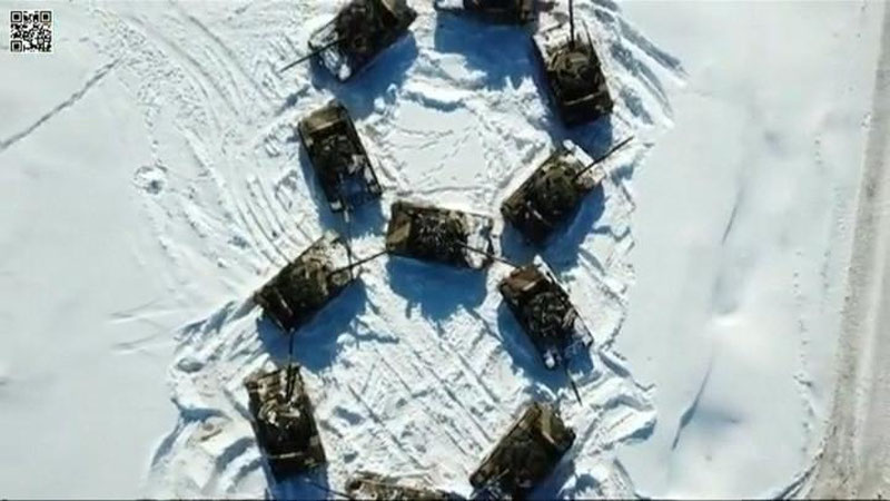 Россияда Халқаро хотин қизлар куни муносабати билан ҳарбийлар томонидан мамлакатдаги аёлларга совға тариқасида танклардан 8 шакли ясалди.