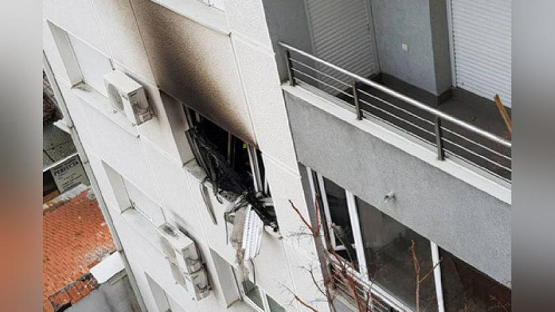Шундан кейин жиноятчи уйига келган ва яна ўқ узганда, ўқ газ баллонга тегиб, портлаб кетган. Оқибатда квартира ёниб кетган ва эркакнинг ўзи ҳам жиддий жароҳатланган. Ўт ўчирувчилар уни олов ичидан олиб чиқишган.