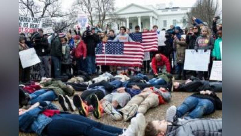 Минглаб ўқувчилар дарс вақтида синф хоналарида эмас, балки Оқ уй биноси атрофида ва шаҳар кўчаларида тўпланишди. Улар мамлакатда амалда бўлган эркин қурол савдосига қарши эканликларини таъкидлашмоқда.