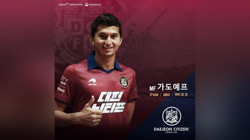 "Бунёдкор" жамоасининг тажрибали ярим ҳимоячиси Шоҳруҳ Гадоев "Кей-Лига 2" аъзоси бўлмиш "Тэджон Ситизен" клуби билан шартнома имзолади, дея хабар берди Сhampionat.asia.