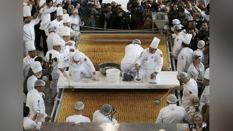 Рекорд ўрнатиш учун гастрономик фестивалга бутун Туркиядан қандолатчилик санъати усталари тўпланишди.