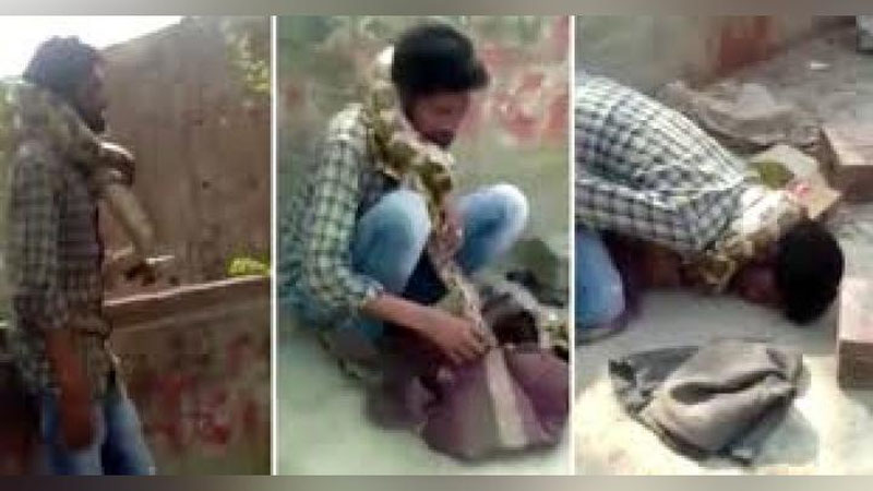 Ҳиндистонда илон авровчини бўғма илон ўлдириб қўяёзди (Видео)