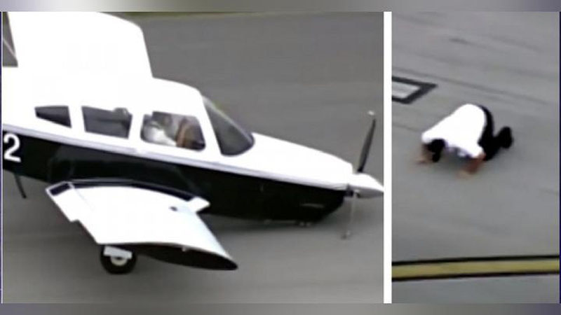 Кичикроқ самолёт учувчиси кескин қўнишдан сўнг ерни ўпди, дея ёзмоқда News.day.az нашри.