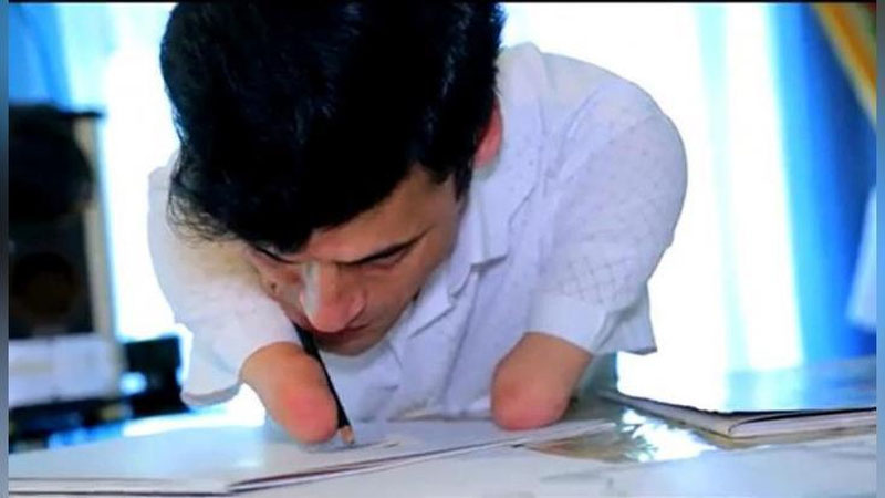 Эксклюзив репортаж: фарғоналик қўлсиз йигит чизган суратлари билан ҳаммани ҳайратга солиб келмоқда (видео)