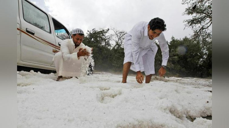 Саудия Ахборот агентлиги Асир вилояти ва Абҳа шаҳри 3 апрель куни оппоқ қорга буркангани хабар қилди. Маҳаллий агентликлар хабарига кўра, қор душанба куни тунги кучли ёмғирдан кейин ёққан.