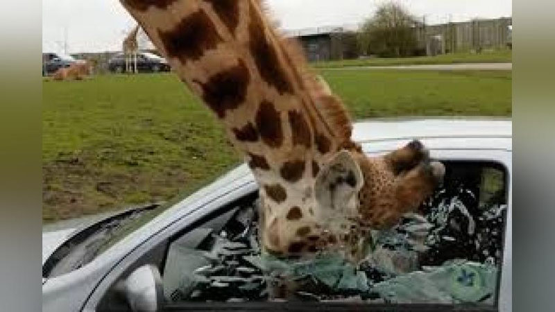 Воқеа Уэст-Мидлендс графлигида жойлашган сафари паркида юз берди. Жирафа овқат излаб машина ойнасидан ичкарига мўралади. Қўрқиб кетган ҳайдовчи аёл ойнани ёпишга ҳаракат қилди, бироқ жирафа ойнани синдирди.