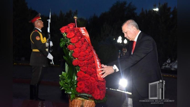 Режеп Таййип Эрдўғон Мустақиллик ва эзгулик монументига гул қўйди
