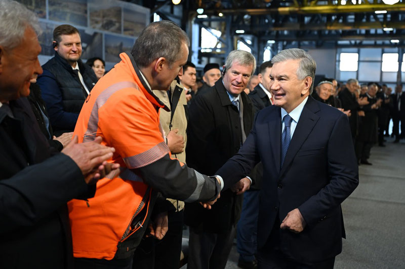 President of Uzbekistan Shavkat Mirziyoyev participated in the ceremony of launching the 3rd copper beneficiation plant at the Almalyk Mining and Metallurgical Combine. The $2.7 billion project, being implemented on an area of 196 hectares within the framework of the "Yoshlik-1" field development program, strengthens the country's industrial capacity and enables deep processing of natural resources.