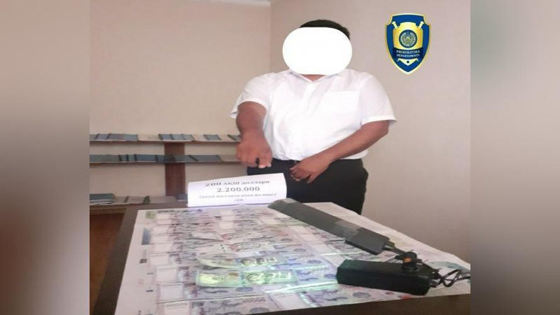 Bosh prokuratura huzuridagi Departament hamda DXXning Uychi tumani bo`limlari tomonidan o`tkazilgan tezkor tadbirda, Uychi tuman Aholi bandligiga ko`maklashish markazi direktori S.A., 2 nafar fuqaroni ushbu markazga ishga qabul qilish evaziga o`z xizmat xonasida 200 AQSh dollari va 2,2 mln so`mni olgan vaqtida ashyoviy dalillar bilan ushlangan. Bu haqda Departament rasmiy kanalida xabar berildi.