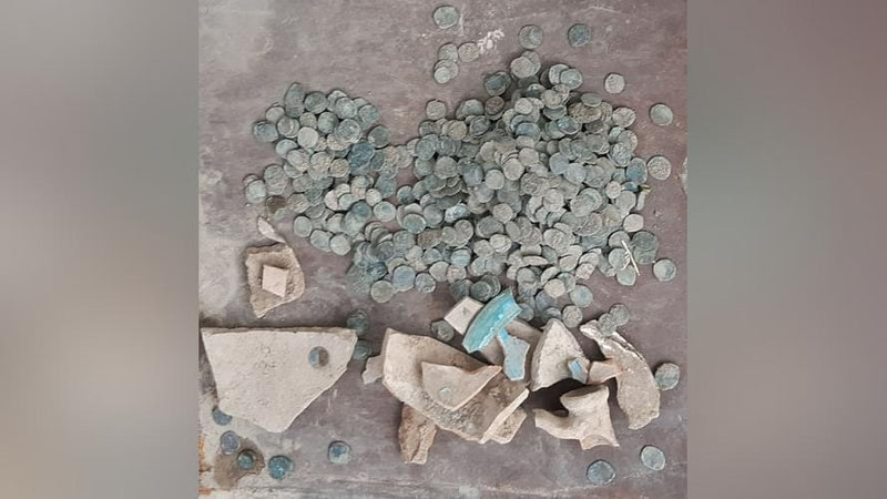 Fanlar akademiyasidan olingan ma`lumotlarga ko`ra, mis tangalar topilgan joy ko`zdan kechirilib, ularning diametri 115 santimetr bo`lgan o`raning er sathidan 40-50 santimetr chuqurlikda, bir joyda to`plangan holda topilganligi, tangalar topilgan joydagi tuproq orasidan o`lchami 25x25x5 santimetr bo`lgan pishiq g`isht bo`lagi, moviy rangda sirlangan va sirlanmagan idishlarning mayda parchalari topildi.