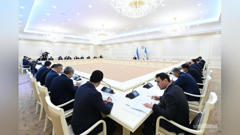 Prezident raisligidagi yig`ilishda Qashqadaryo viloyati hokimi Murod Azimov hududni rivojlantirish ishlari holati va istiqboldagi maqsadlar yuzasidan hisobot bermoqda.