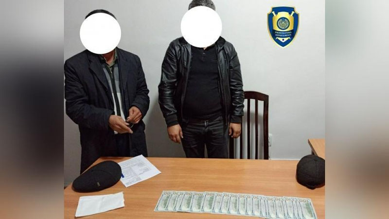 Viloyat qishloq xo`jalik boshqarmasi bo`lim boshlig`i M.A. va Nasos stansiyalari va energetika boshqarmasi Chiroqchi uchastkasi boshlig`i S.A. fuqaro B.E.ga tanishlari orqali tumandagi “Ch.Ch.” fermer xo`jaligi dala maydonidan davlat dasturiga kiritilgan quduqni qazib ishga tushirish uchun hujjatlarni rasmiylashtirib berishini aytib, evaziga 2 500 AQSh dollarini olgan vaqtida ashyoviy dalillar bilan ushlanganlar.
