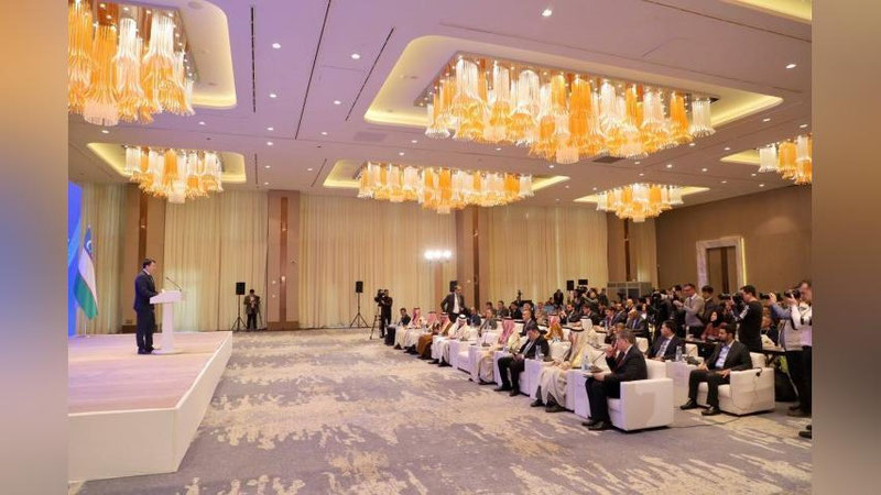 O`zbekiston Respublikasi Bosh vazirining o`rinbosari – investisiyalar va tashqi savdo vaziri Jamshid Xo`jaev O`zbekiston-Saudiya Arabistoni biznes-forumida nutq so`zlamoqda: