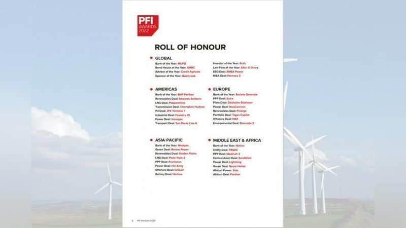 PFI (Project Finance International) mukofotlari loyihalarni moliyalashtirish sohasidagi eng nufuzli mukofotlardan biri bo`lib, har yili Evropa, AQSh, Osiyo, Yaqin Sharq va Afrikadagi loyihalarni moliyalashtirish bo`yicha eng yaxshi operasiyalar uchun beriladi.