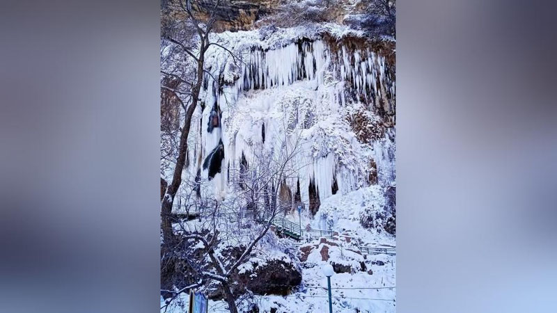 Sovuq ob-havo tufayli, Surxondaryo viloyati, Sariosiyo tumanidagi Sangardak sharsharasi muzlab qolgan.