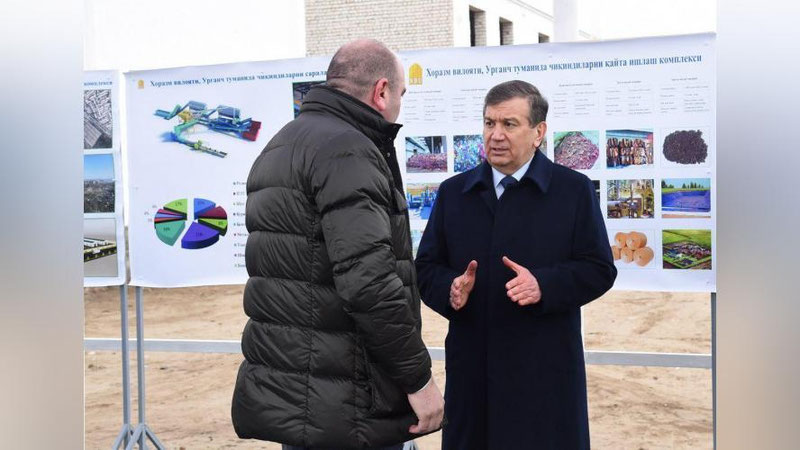 Prezident Shavkat Mirziyoev Xorazmga tashrifi chog`ida viloyatda qurilayotgan qattiq maishiy chiqindilarni qayta ishlash zavodi qurilishi bilan tanishdi.