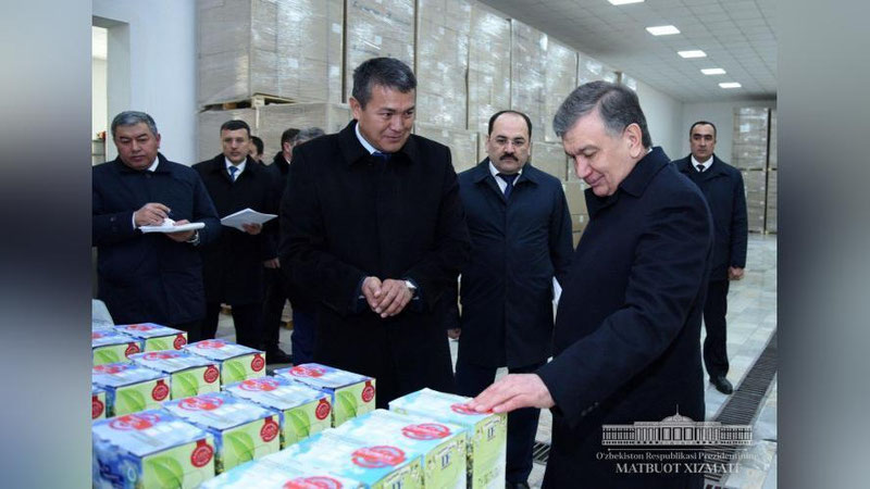 Prezident korxonadagi ish jarayoni bilan tanishdi. Bu erda joriy qilingan zamonaviy texnologiyalar samarali ish jarayoni va yuqori sifatli mahsulot tayyorlashni ta`minlamoqda. Meva-sabzavotlarning tabiiy xususiyatlari saqlab qolingan tayyor mahsulot 1,5 va 3 litrli maxsus idishlar — aseptik paketlarga qadoqlanadi. Korxona xodimlari kasb-hunar kollejlarini bitirgan yoshlardir. Ularga zamonaviy texnologiyalarni o`zlashtirishda xorijlik mutaxassislar saboq bergan.