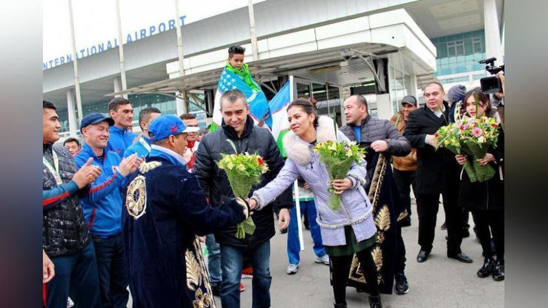 Bir necha daqiqa oldin bokschilarimizni aeroportda katta tantanalar bilan kutib olishdi.