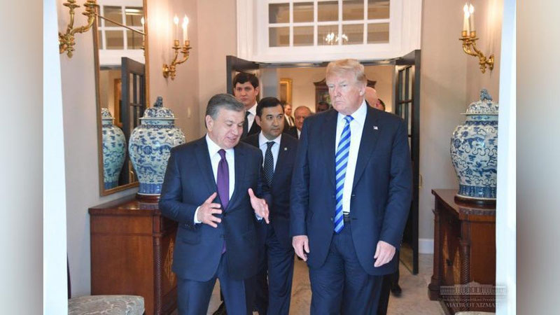 Muzokaralar so`ngida Prezident Donald Tramp Prezident Shavkat Mirziyoevni kuzatib qo`ydi.