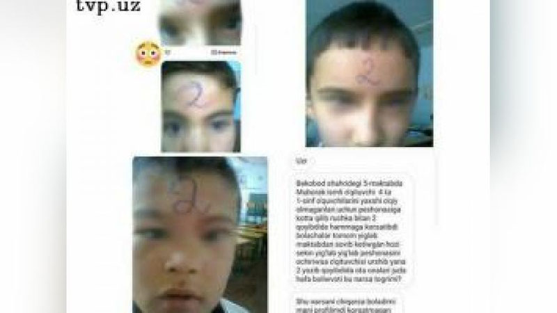 Ma`lum bo`lishicha, 2018 yil 3 may kuni Toshket viloyati Bekobod shahridagi 5-sonli umumta`lim maktabining boshlang`ich ta`lim o`qituvchisi M.Hamdamova shu dargohda taxsil olayotgan 1-“j” sinfining to`rt nafar o`quvchisini uy vazifasini tayyorlab kelmaganlikda ayblab, jazo sifatida sinfdagi barcha o`quvchilarning ko`z o`ngida “ikki” bahoni ruchkada ularning peshonasiga yozib qo`ygan.