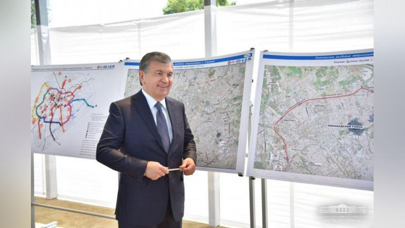 Davlatimiz rahbari Ohangaron shossesi bo`ylab qurilayotgan er usti xalqa metro liniyasiga doir loyihalar bilan ham tanishdi.