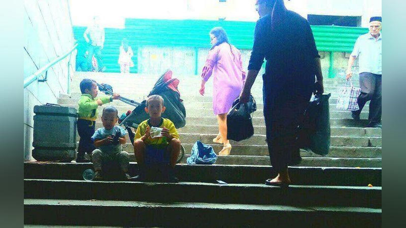 Uzining to`rt nafar bolasi bilan Jizzax viloyatining Paxtakor tumanidan kelgan Shohida ismli ayol tilanchilik bilan pul topishga majbur. Bolalarning eng kattasi — 9-11 yoshlarda bo`lsa, eng kichkinasi emizikli go`dak.